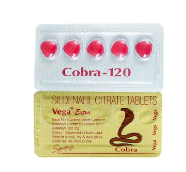 Cobra 120 mg pills have generic Sildenafil Citrate which is a potent PDE-5 hormone inhibitor. With the actions of PDE-5, the blood flow in the veins of the penis increases, and also the penile relaxes which ultimately results in having a firm erection for a longer duration.