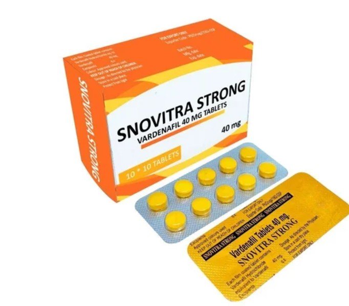 Snovitra Strong 40mg is a medication primarily use for the treatment of erectile dysfunction (ED) in men. It contains the active ingredient Vardenafil, which belongs to a class of drugs known as phosphodiesterase type 5 (PDE5) inhibitors. Vardenafil works by increasing blood flow to the penis during sexual stimulation, resulting in improved erectile function and the ability to achieve and maintain a satisfactory erection.